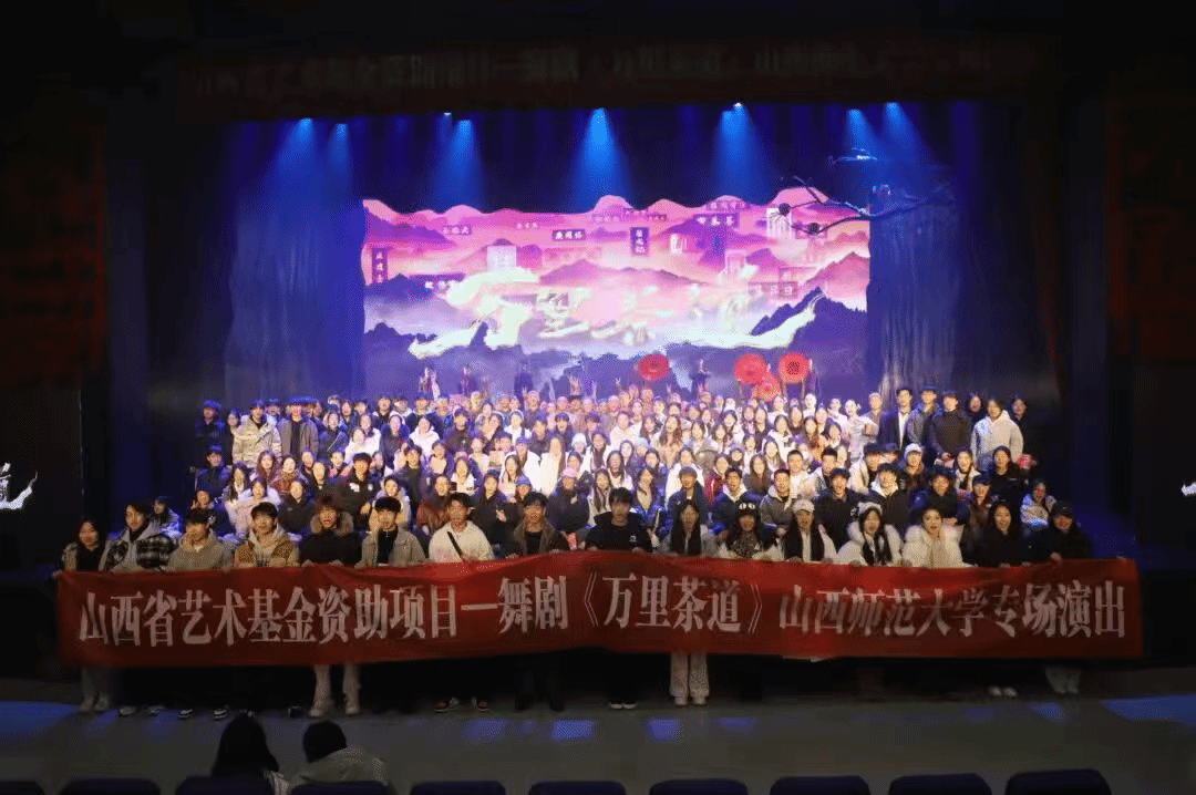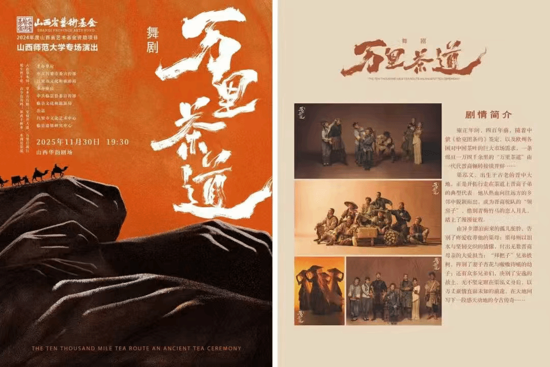 2025年11月30日19:30,山西省艺术基金2024年度资助项目舞剧《万里茶道》——山西师范大学专场演出在山西华韵剧场温情启幕。本场演出由中共吕梁市委宣传部、吕梁市文化和旅游局等联合主办,中共临县县委宣传部、临县文化和旅游局承办,吕梁市文化艺术中心、临县道情研究中心联合出品。